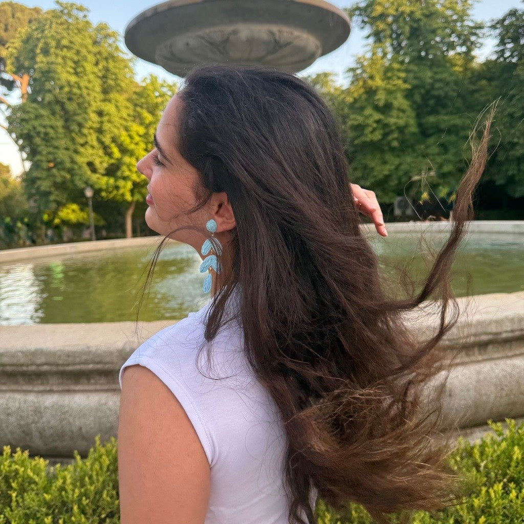 Du hast es satt lange Ohrringe im Sommer zu tragen, die nach 1 Stunde viel zu schwer sind? Kein Problem! Unsere 'Ojas' Ohrringe sind superleicht und lassen dich durch den Alltag strahlen ohne zu leiden!